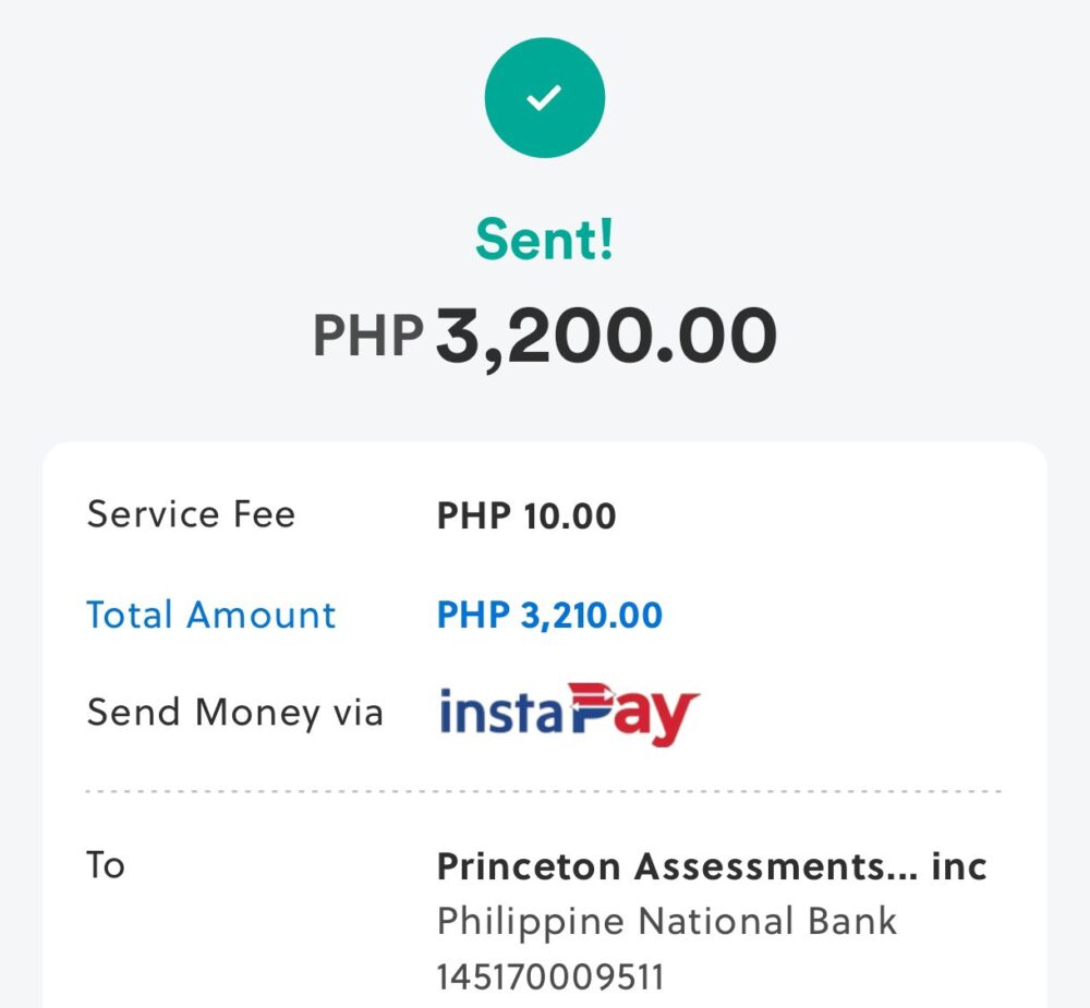 私の場合、申し込みが直前となったので追加料金を支払いました。つまり受験料3,200ペソ(約8,600円)が必要でした。