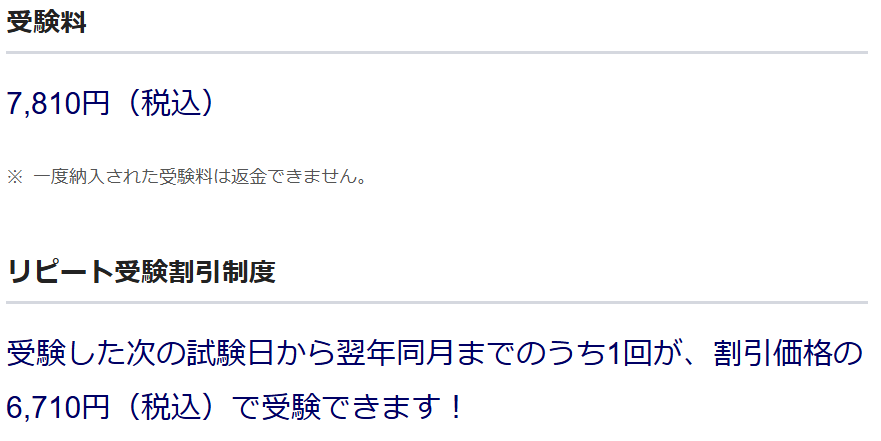 ただ日本ではリピート割があり、1年以内に再受験する場合は6,710円となるようです。