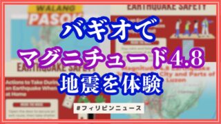 体験レポ バギオでマグニチュード4.8の地震を体験 ここ最近、フィリピンでは地震の話題が絶えない。先月はセブ島北部のBOGOという地域にて、M6.9の大地震があったばかり。本日2025年10月9日、バギオでもM4.8の地震が発生。海外で地震に遭遇した体験を本記事に残しておきます。地震の詳細発 2025.10.09 体験レポ