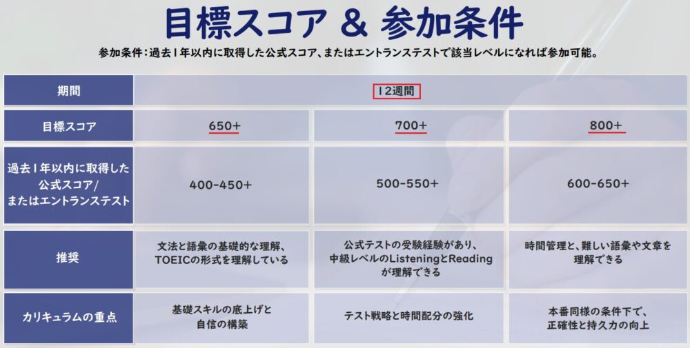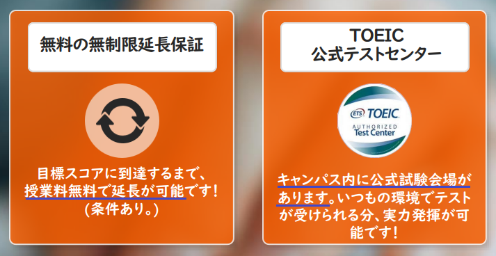 同じTOEICコースでも、こちらは目標スコア到達を保証。