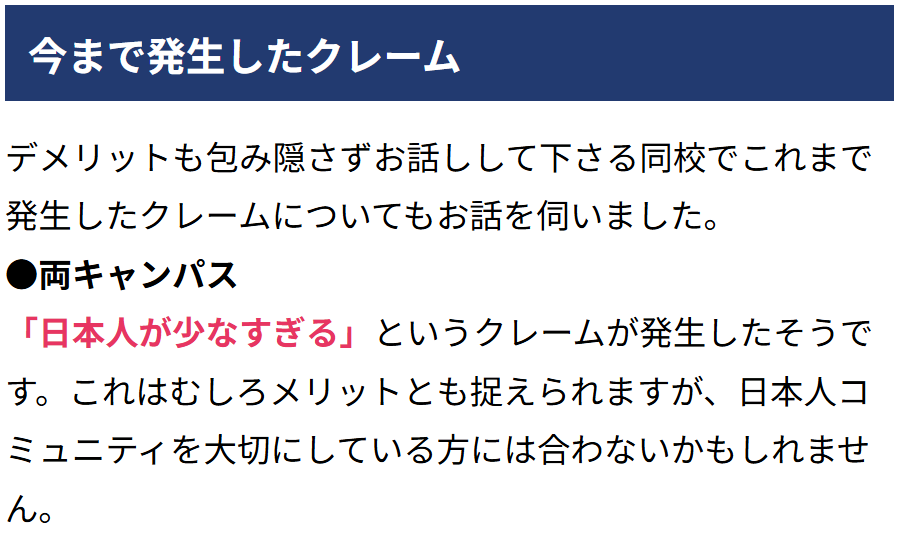 クレーム(?)として書かれていますが、日本人比率が少ない環境を求める方も多いはず。