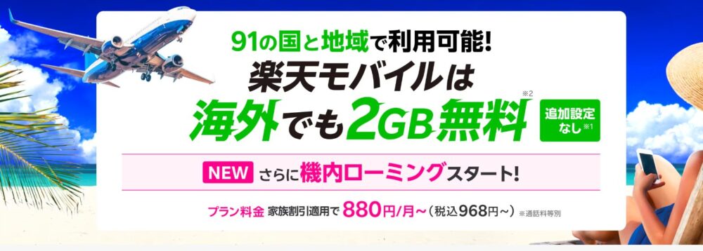 昔から海外でも使えて便利と評判なのは、楽天モバイル。