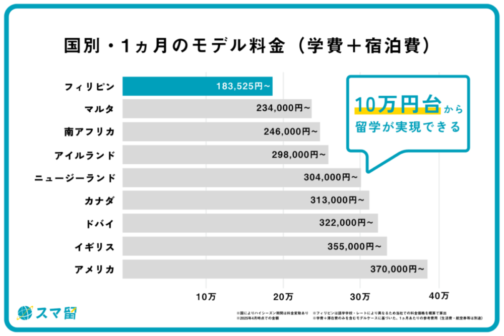 データ元であるスマ留は、「留学費用が従来の最大半額」がセールスポイントになっています。
